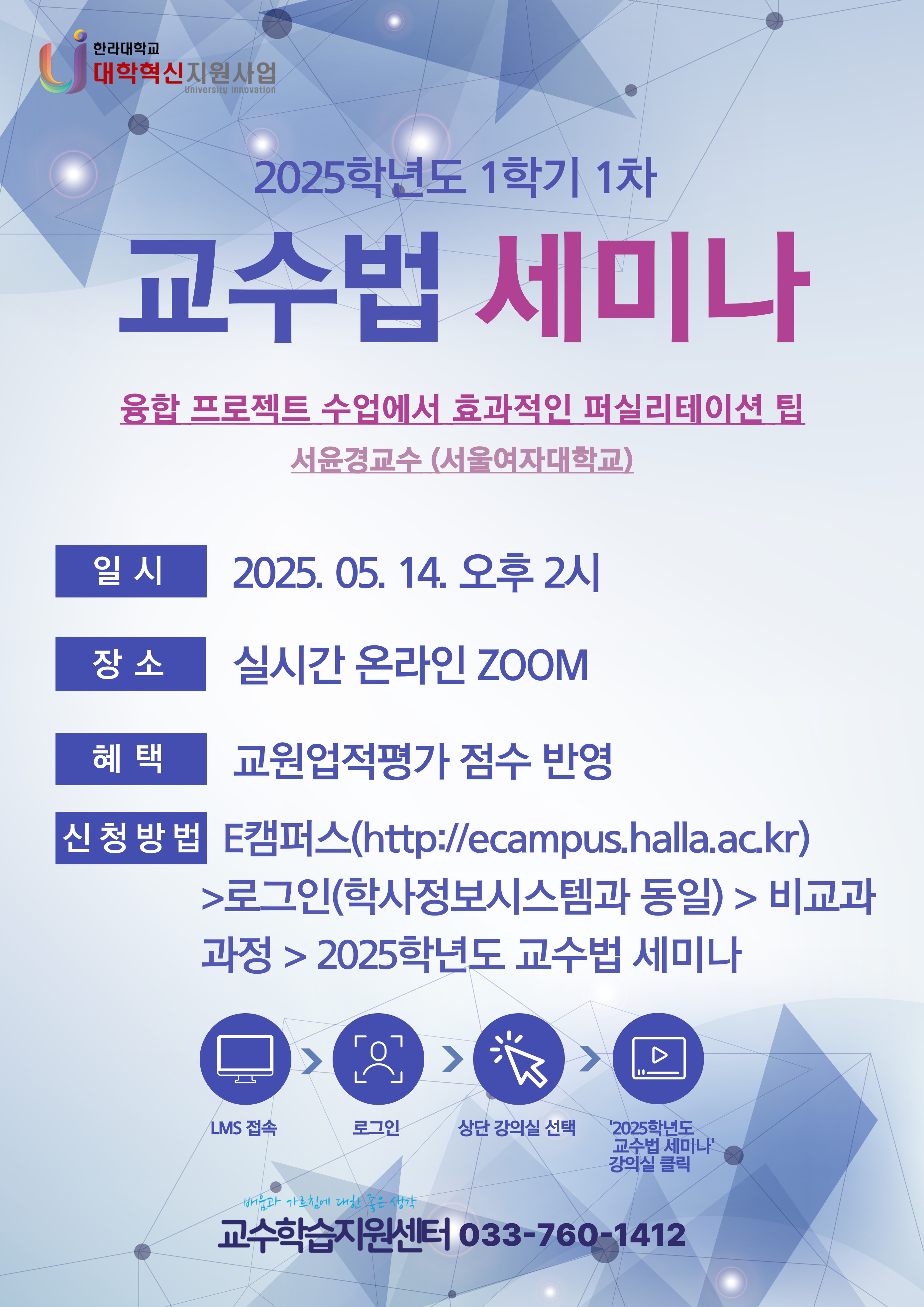 문의) 교수학습지원센터 교수지원 (033-760-1412)