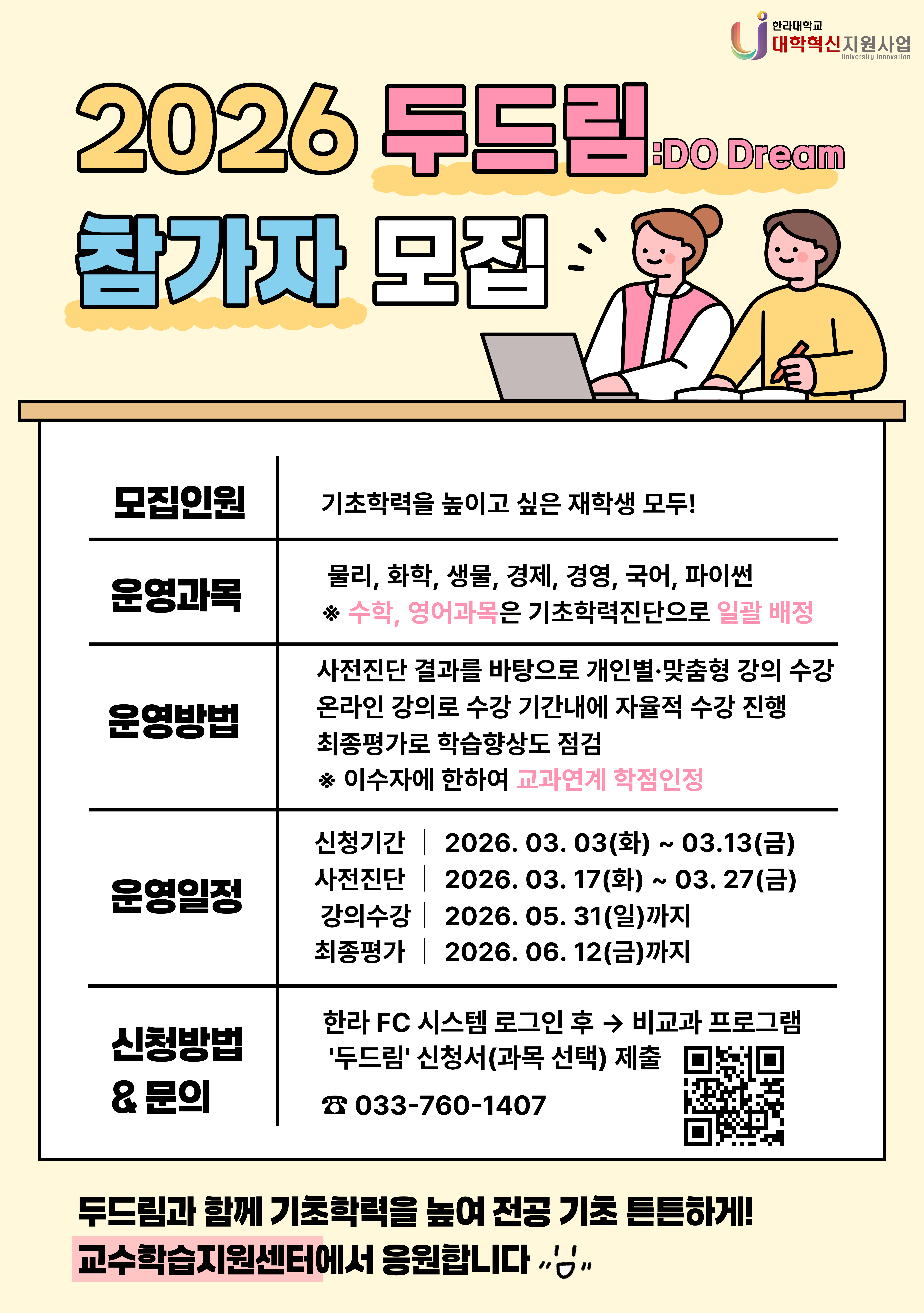 1) 교과연계 학점 인정 가능! 두드림 프로그램 이수자는 전공기초탐색(1) 수강신청 必